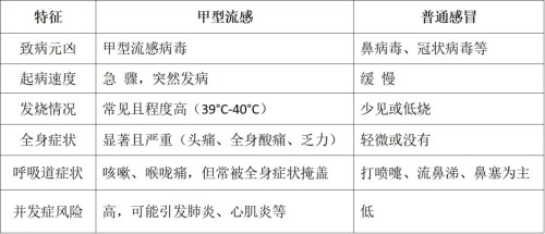 3. 与普通感冒的区别:很多人会混淆甲流和感冒,我们可以通过一个简单的表格来区分:
